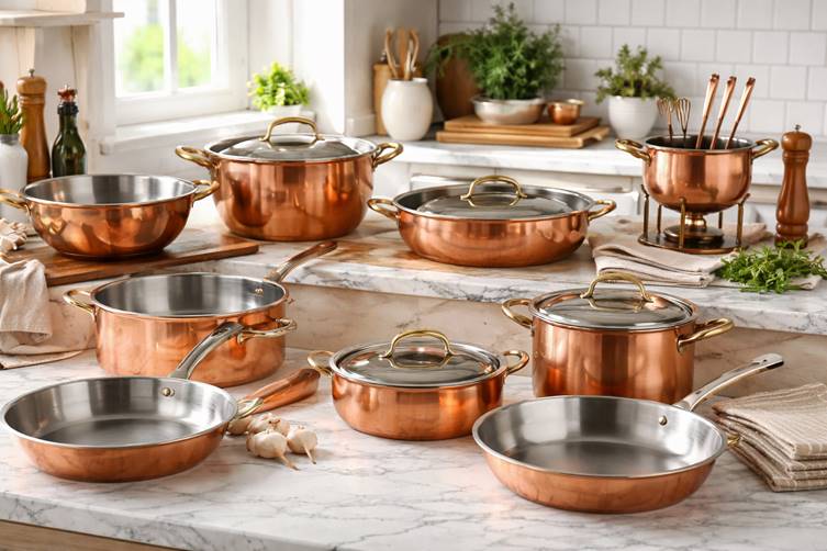 Cooks’ line copper cookware with stainless steel or tin to make it safe to cook on. This lining prevents copper from reacting with food while preserving its excellent heat conductivity. Among the various types of cookware materials, copper is considered one of the most premium options due to its performance, craftsmanship, and elegant appearance.