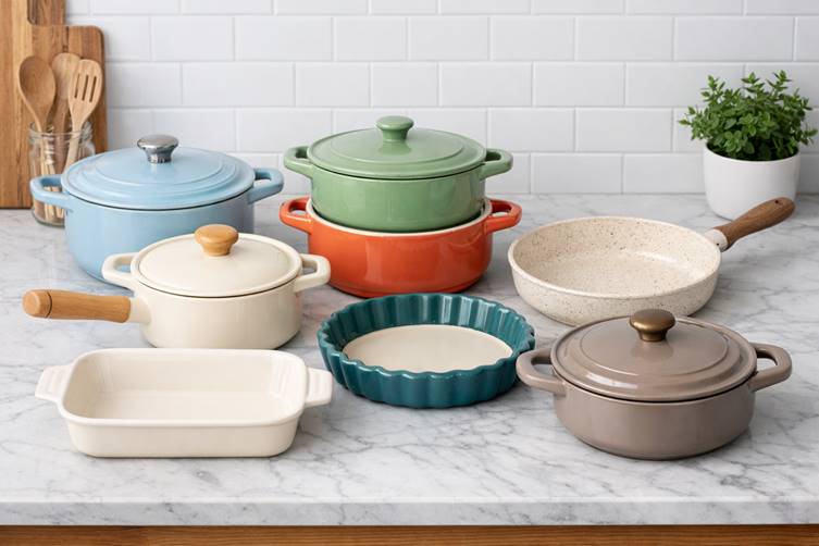 Ceramic cookware is either made entirely from ceramic material or consists of metal cookware coated with a ceramic layer. People often choose it when they prioritize healthy and chemical-free cooking. Among the various types of cookware materials, ceramic stands out for being non-toxic and free from PTFE and PFOA, making it a popular option for modern, health-conscious kitchens.